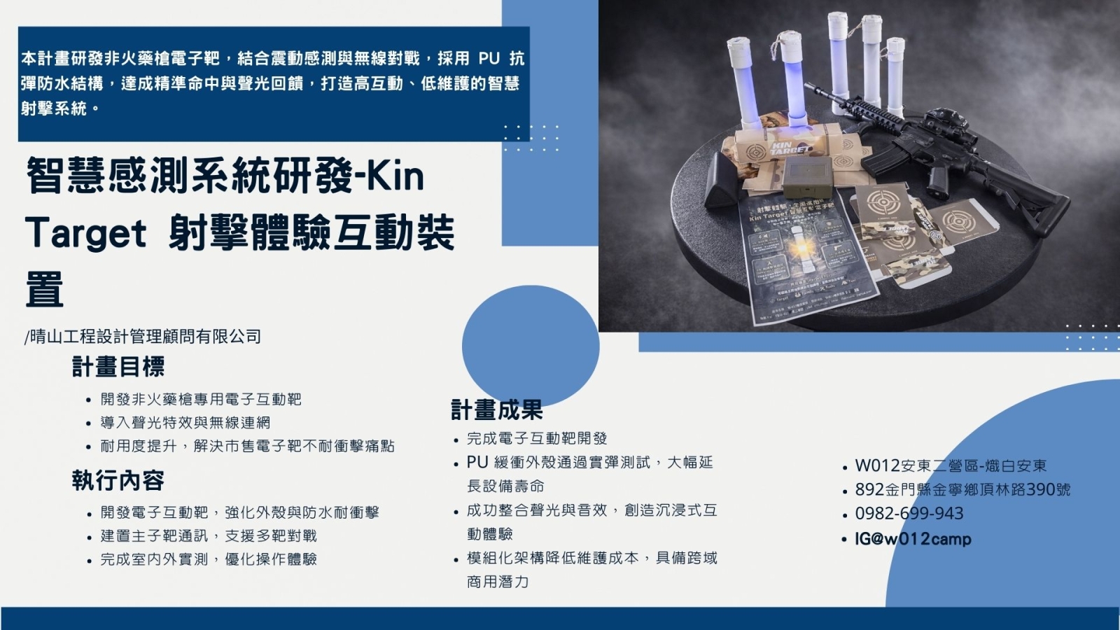開發 Arduino 模組化震動感測電子靶,透過 LED 與無線回饋,提供低成本、高擴充性的即時命中互動,提升非火藥類射擊活動的娛樂與訓練價值。